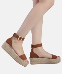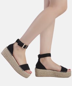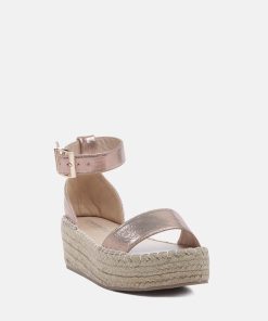 Comfortable espadrilles with finished metal buckle closure. Braided jute flats that pump up your style.