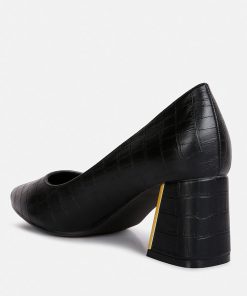 A classic style of pumps and some elevation with the metallic heel detail makes these pump shoes a must-have indeed! The beautiful croc texture makes them look stylish while the soft padded insoles offer comfort to feet. The pumps are perfect as shoes for work and plat and would make great transition shoes as part of your shoedrobe!