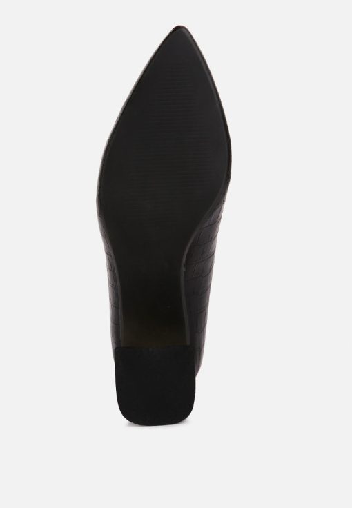 A classic style of pumps and some elevation with the metallic heel detail makes these pump shoes a must-have indeed! The beautiful croc texture makes them look stylish while the soft padded insoles offer comfort to feet. The pumps are perfect as shoes for work and plat and would make great transition shoes as part of your shoedrobe!