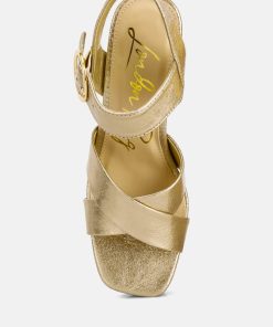Step into the 70s with these metallic strappy high block heel sandals, exuding evening glamour. Ideal for a night out, these sandals offer a refreshing alternative to black platform boots everyone is wearing. Make a statement on the dance floor in these unique heels. Embrace their stylish appeal and enjoy a touch of vintage-inspired elegance that will undoubtedly set you apart from the crowd.