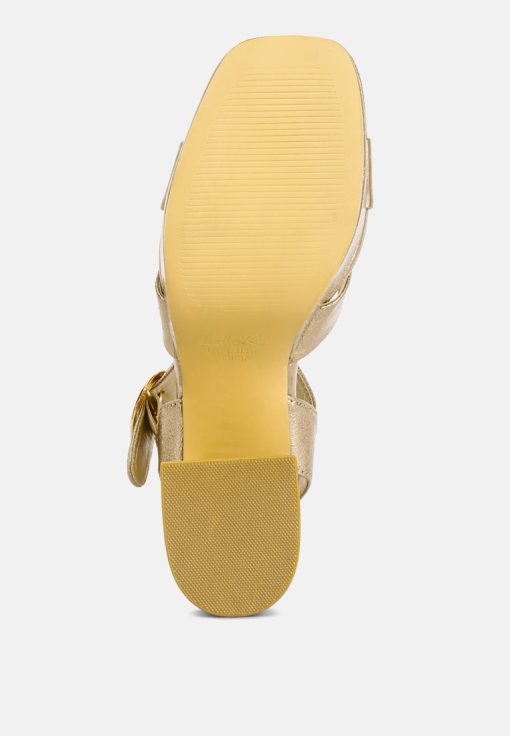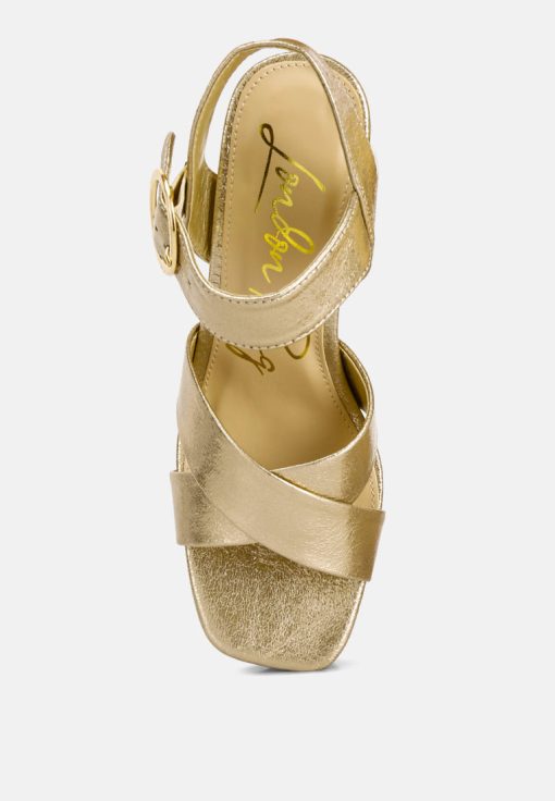 Step into the 70s with these metallic strappy high block heel sandals, exuding evening glamour. Ideal for a night out, these sandals offer a refreshing alternative to black platform boots everyone is wearing. Make a statement on the dance floor in these unique heels. Embrace their stylish appeal and enjoy a touch of vintage-inspired elegance that will undoubtedly set you apart from the crowd.