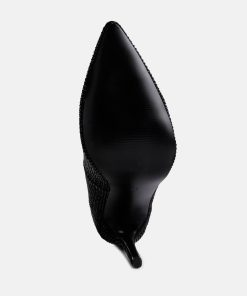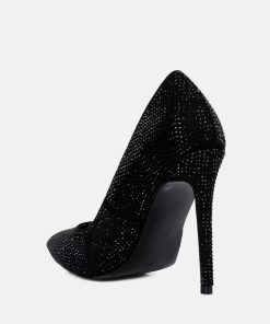 Beautified with sparkling diamante detailing, these high heels are not just shoes but a statement piece. These pumps are the perfect addition to your evening dress but wait. We didn’t stop at dazzling aesthetics; we care about your comfort, too, thus the light cushioned insole!