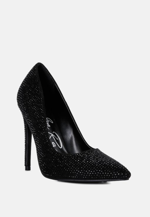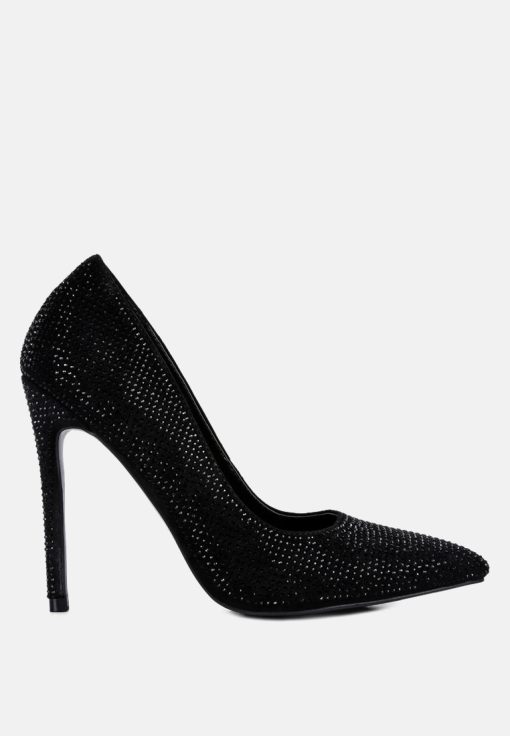 Beautified with sparkling diamante detailing, these high heels are not just shoes but a statement piece. These pumps are the perfect addition to your evening dress but wait. We didn’t stop at dazzling aesthetics; we care about your comfort, too, thus the light cushioned insole!