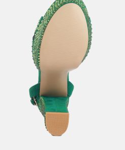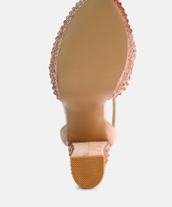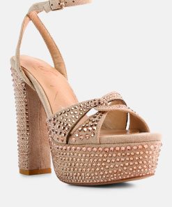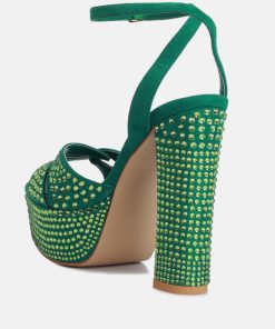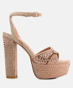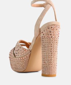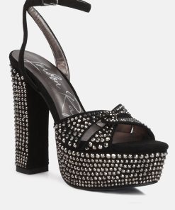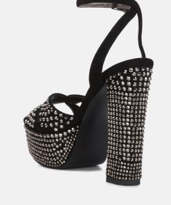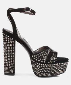 These ultra-high heeled block sandals are a true treasure, made with high-quality construction and finish. This pair of statement sandals features heat-set diamante on soft microfiber and comes with a light cushion insole for comfort. The high-heeled women’s sandal is designed with a pin buckle fastening, ensuring a secure fit for your feet.