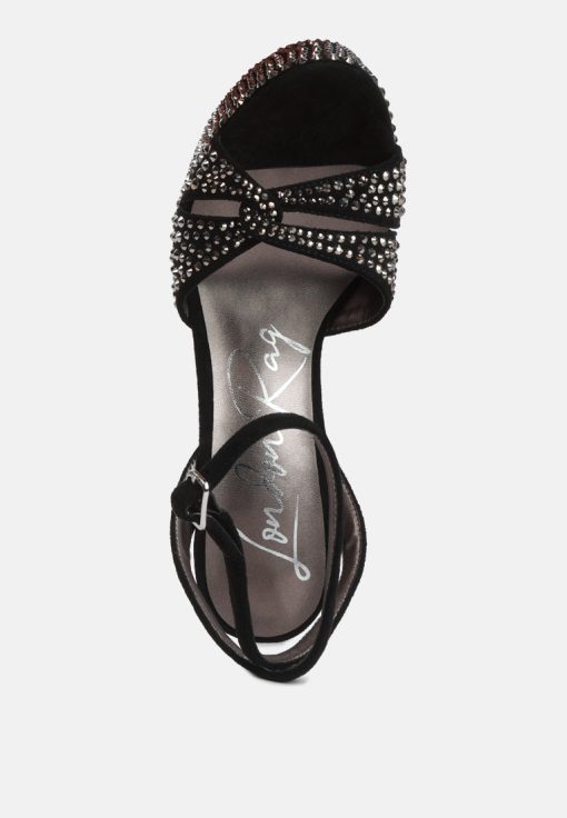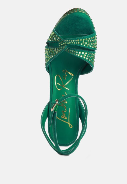 These ultra-high heeled block sandals are a true treasure, made with high-quality construction and finish. This pair of statement sandals features heat-set diamante on soft microfiber and comes with a light cushion insole for comfort. The high-heeled women’s sandal is designed with a pin buckle fastening, ensuring a secure fit for your feet.