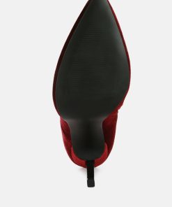 Stiletto High Heeled Velvet Boot comes with side zipper opening. The high heeled stiletto sandal in velevet is chic and luxurious.