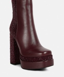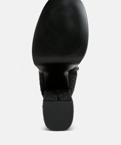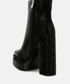 This is the ideal party boot, with Diamante details on the block heel and boots that will go with all of your pretty outfits. Its side zipper and Lightly Cushioned Insole add to its elegance and comfort, while its front square toe with Diamante embellishment make it stylish.