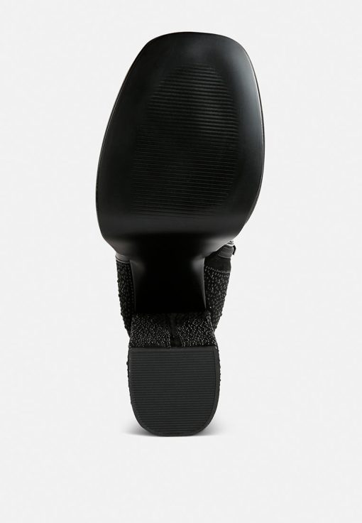 This is the ideal party boot, with Diamante details on the block heel and boots that will go with all of your pretty outfits. Its side zipper and Lightly Cushioned Insole add to its elegance and comfort, while its front square toe with Diamante embellishment make it stylish.