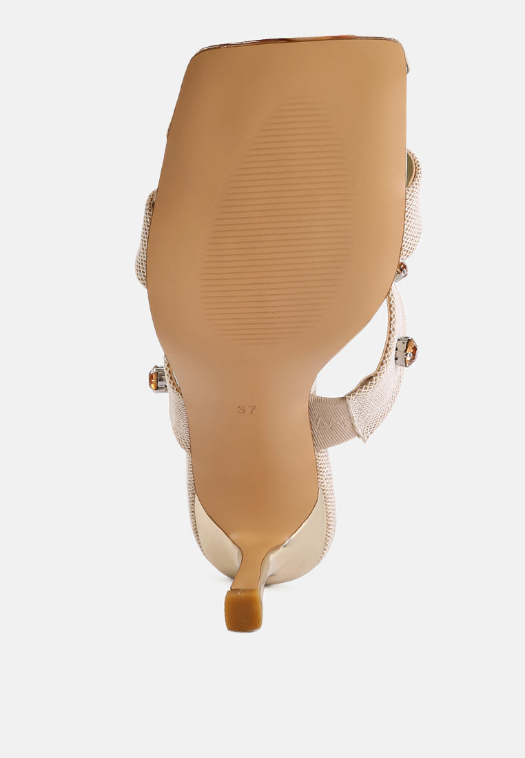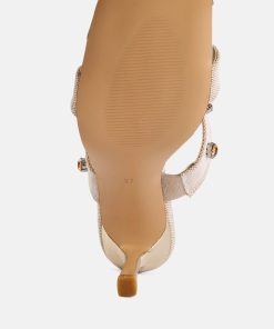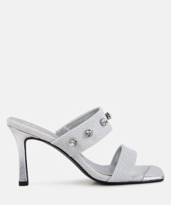 Our slip-on style ensures you can slip into these beauties without any fuss, making them an ideal choice for wedding shoes, wedding guest shoes, or any fancy events. Whether walking down the aisle, attending a friend’s wedding, or gracing a fancy soirée, these diamante-embellished sandals are about to be your forever go-to!