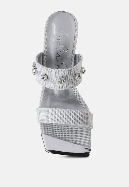 Our slip-on style ensures you can slip into these beauties without any fuss, making them an ideal choice for wedding shoes, wedding guest shoes, or any fancy events. Whether walking down the aisle, attending a friend’s wedding, or gracing a fancy soirée, these diamante-embellished sandals are about to be your forever go-to!