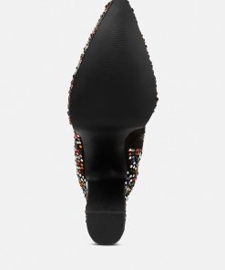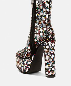 A maximalist’s dream, the embellished platform boots are striking with the mirrors and rhinestone embellishment. The high block heel amplifies the visual aesthetic as well as gives you that elevated effect. The lightly cushioned insoles cut strain and make sure you can party all night wearing these beauties!
