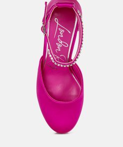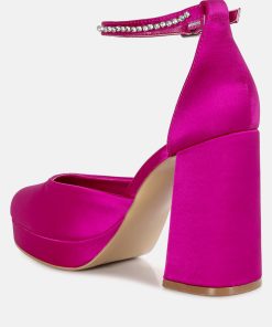 Indulge in opulence with Satin Rhinestone Embellished Strap Platform Heels. The lavish design features rhinestone-adorned satin straps for a touch of glamour. Ideal for special occasions, the platform heel offers both style and comfort. The rhinestone detailing adds a sparkling dazzle, making these heels stand out.