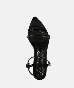 These open pointed-toe high-heeled sandals are a true beauty and have been quite the rage recently. This stylish shoe features an interesting drawstring-type ankle band for a unique fit. Stand out this holiday season with their supreme comfort and style.
