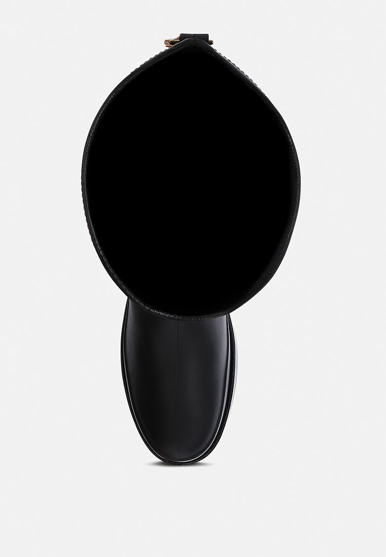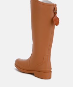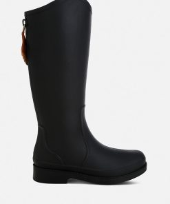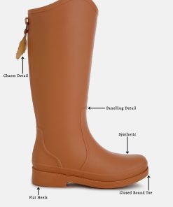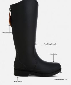 Simplistic, versatile, and chic, the calf boots are a statement piece with their eclectic design that stands out! The rain boots make a bold statement by themselves and the charm detail adds an intriguing element to the design! The perfect addition to your monsoon wardrobe!