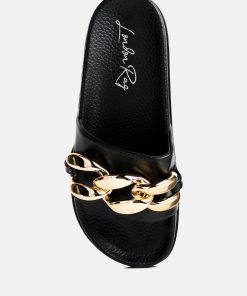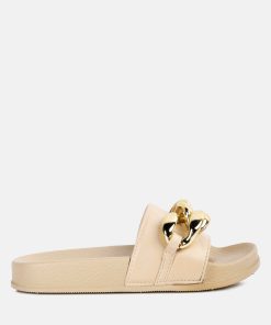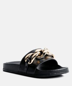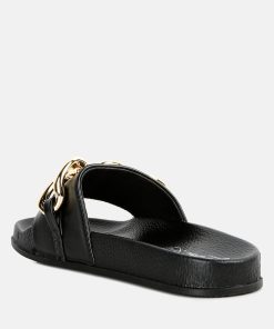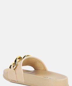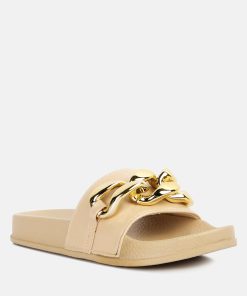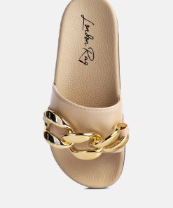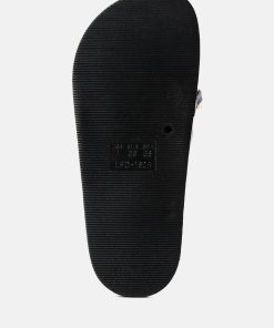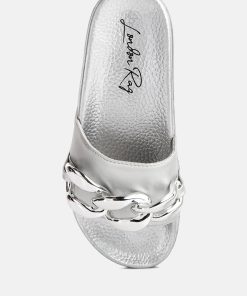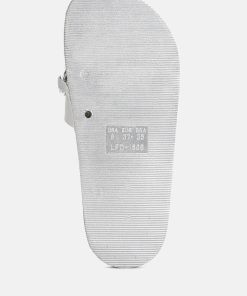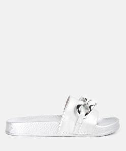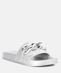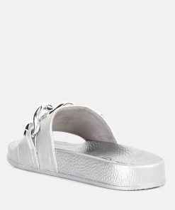 The molded footbed, comfortable platform, and gripping outsole are what make these otherwise beautiful metallic high bling slides utilitarian.
