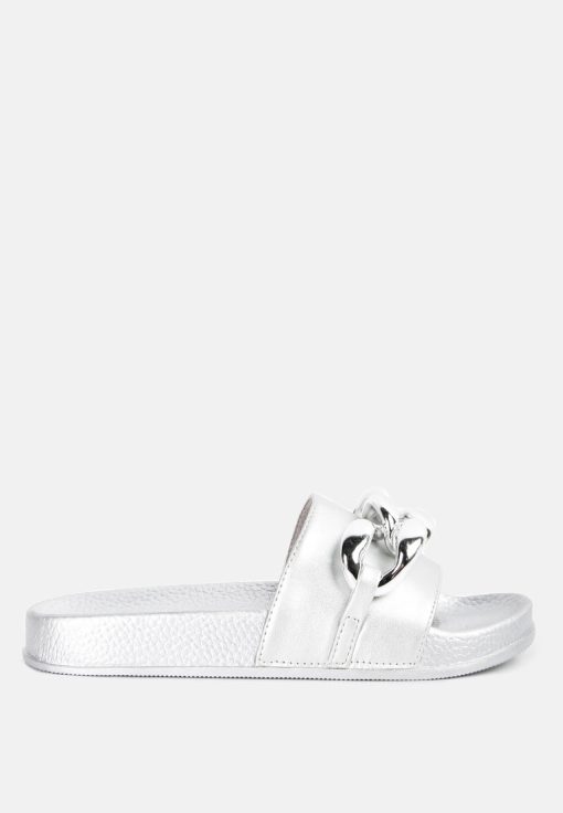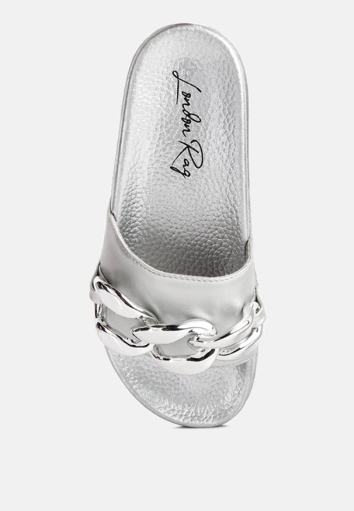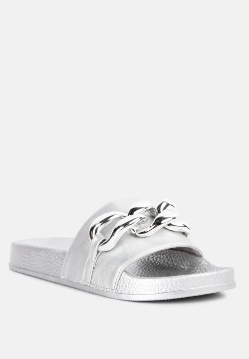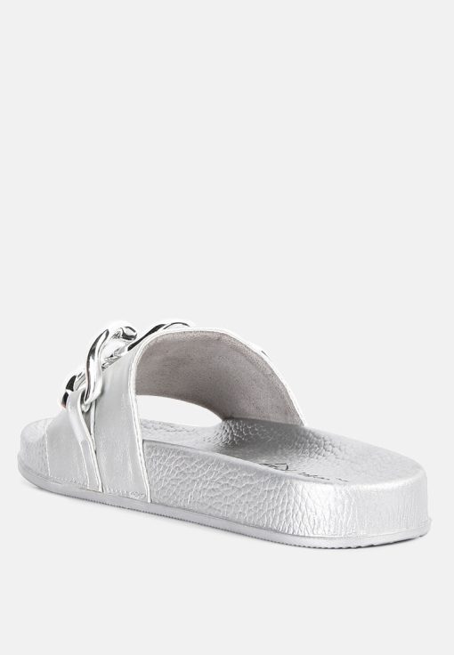 The molded footbed, comfortable platform, and gripping outsole are what make these otherwise beautiful metallic high bling slides utilitarian.