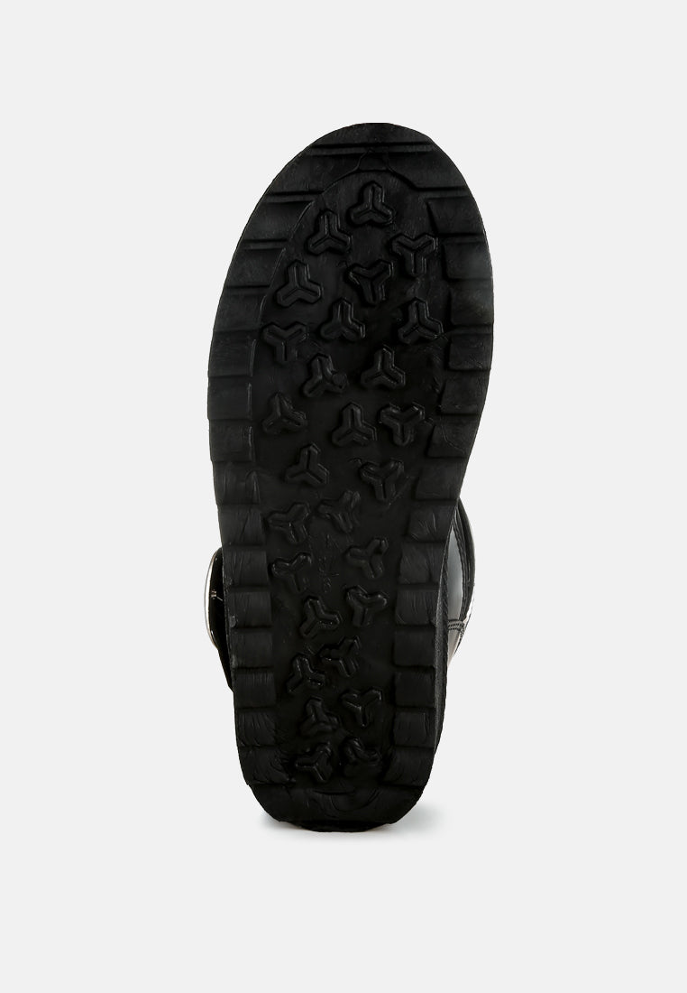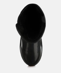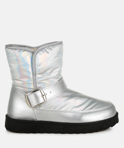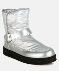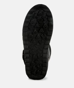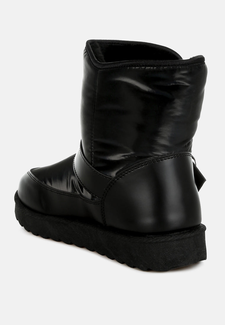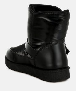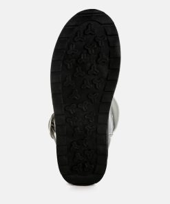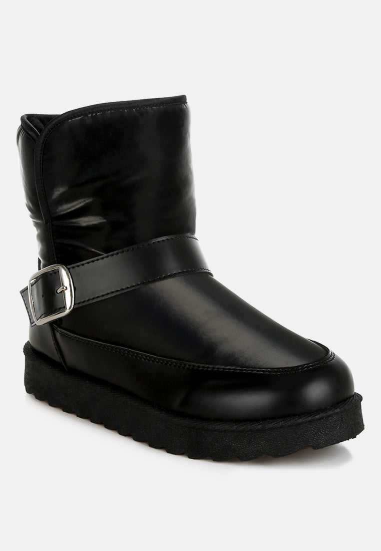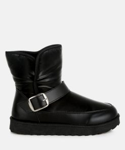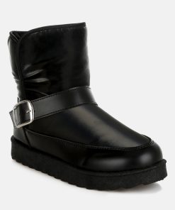 Refresh your footwear collection this season with these uber-cool faux leather puffy ankle boots. They feature a silver-tone adjustable buckle fastening on the strap, a chunky anti-skid sole, a closed rounded toe, and a faux leather finish. Pair them with jeans and a knit jumper for an everyday outfit.