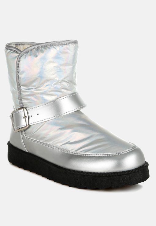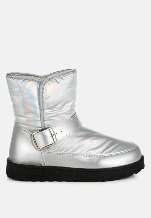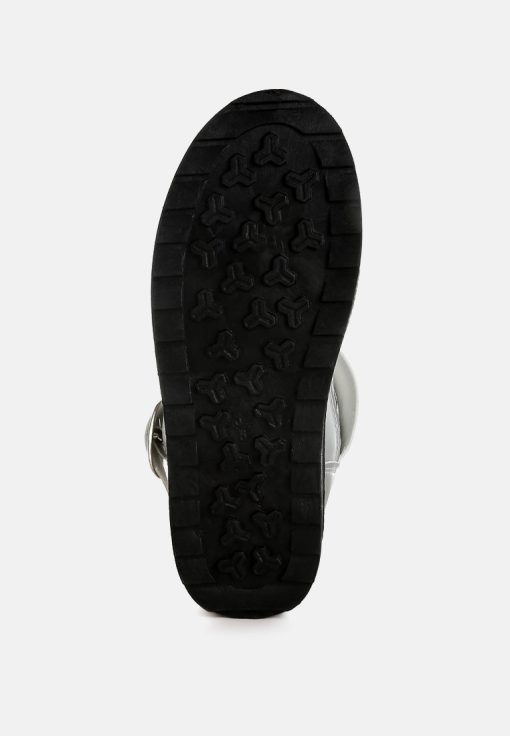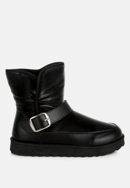 Refresh your footwear collection this season with these uber-cool faux leather puffy ankle boots. They feature a silver-tone adjustable buckle fastening on the strap, a chunky anti-skid sole, a closed rounded toe, and a faux leather finish. Pair them with jeans and a knit jumper for an everyday outfit.