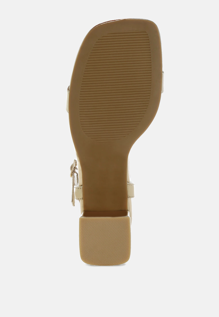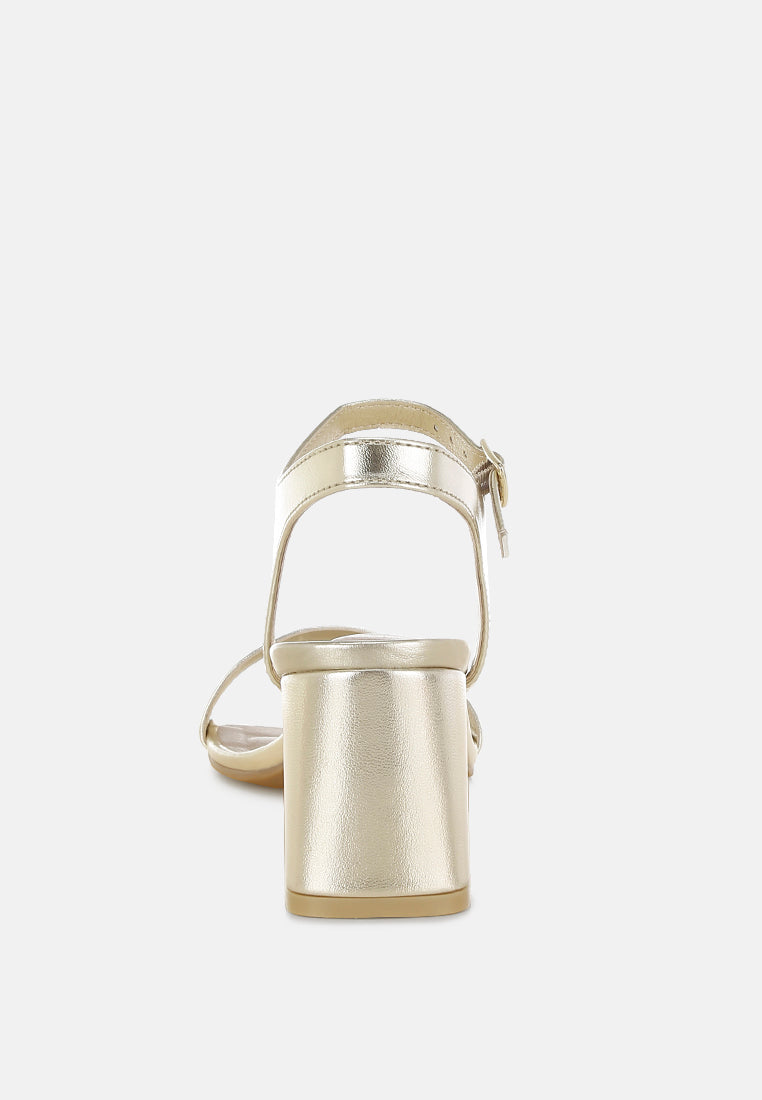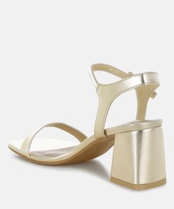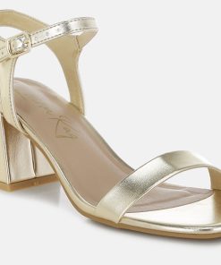 Shine bright everywhere you go with these flared block heels. They feature an open square toe, a pin buckle ankle strap and a metallic exterior for that subtle bling. Team this pair with your evening-ready ensembles to steal the limelight.