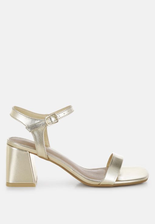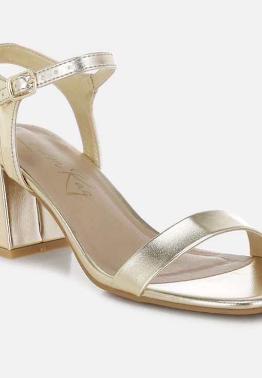 Shine bright everywhere you go with these flared block heels. They feature an open square toe, a pin buckle ankle strap and a metallic exterior for that subtle bling. Team this pair with your evening-ready ensembles to steal the limelight.