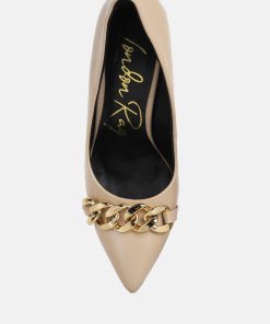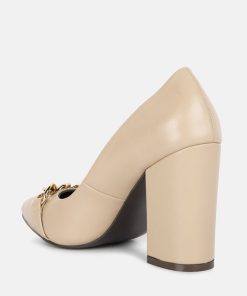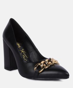 Looking to take your footwear fashion game a notch higher? The block heel pumps are an epitome of beauty and comfort combined, thanks to the metal chain detailing on the front and a soft cushion insole for the feet. Rock the high-heeled pumps in your office or after work without compromising on glam.