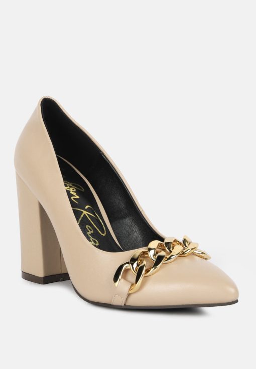Looking to take your footwear fashion game a notch higher? The block heel pumps are an epitome of beauty and comfort combined, thanks to the metal chain detailing on the front and a soft cushion insole for the feet. Rock the high-heeled pumps in your office or after work without compromising on glam.