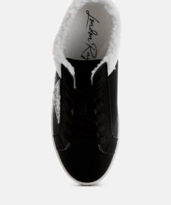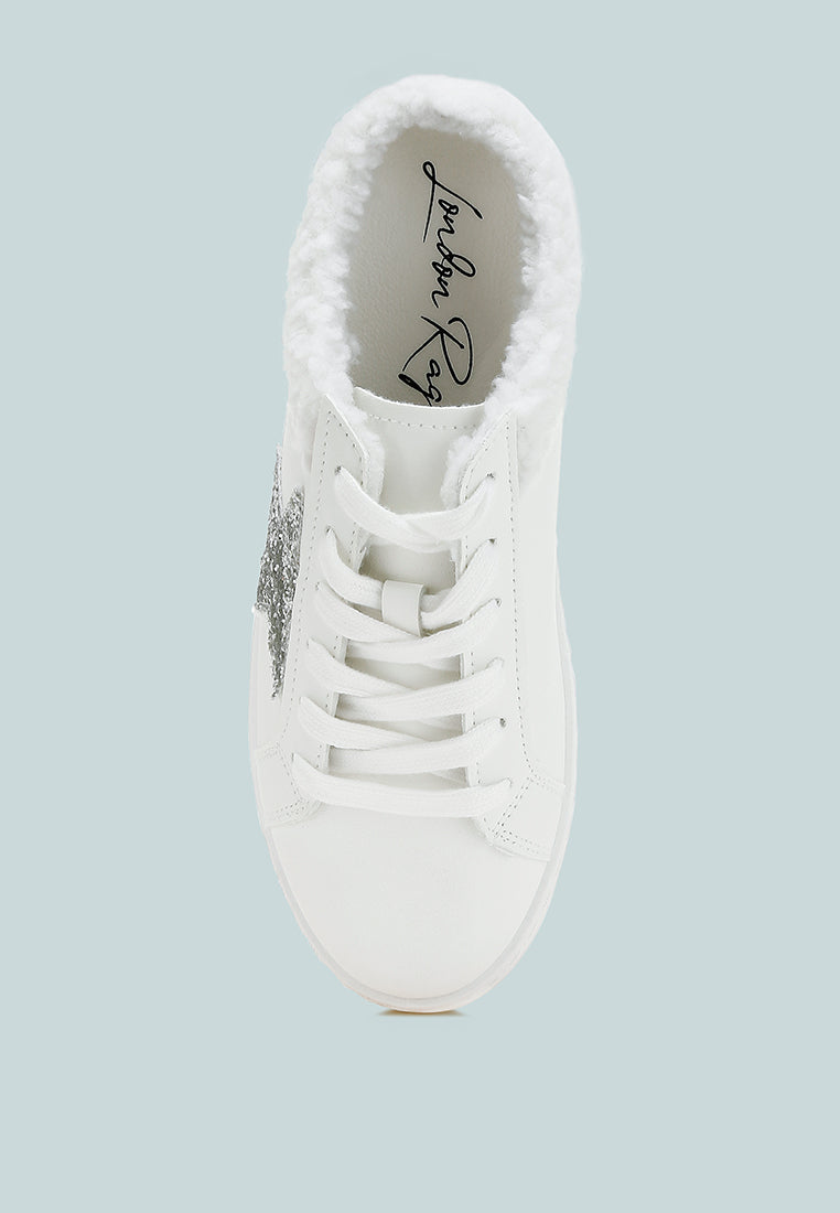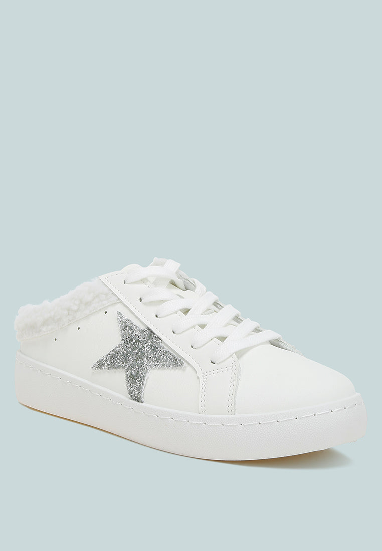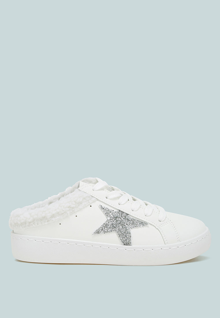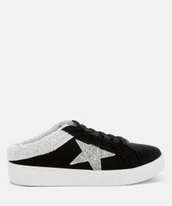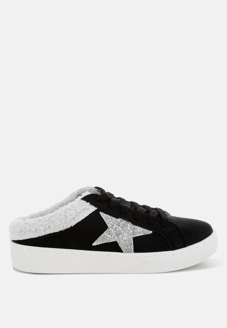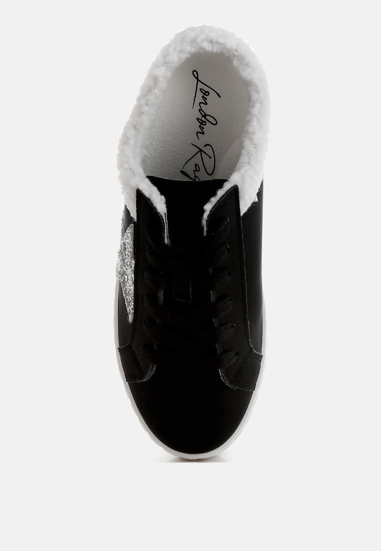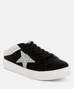The slip on sneakers are easy to wear as well as have a cozy fit with the fur collar and cushion insoles that cut strain. The sneakers also have a trendy touch with the glitter star patch that accentuates the overall look of the sneakers.
