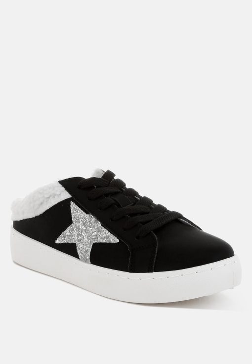 The slip on sneakers are easy to wear as well as have a cozy fit with the fur collar and cushion insoles that cut strain. The sneakers also have a trendy touch with the glitter star patch that accentuates the overall look of the sneakers.