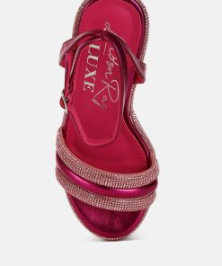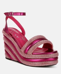 These high wedge heel sandals are the epitome of style! Featuring a gorgeous 4-inch heel, plush cushion insoles, and an adjustable pin buckle ankle strap, these stunning sandals are adorned with rhinestones for a glamorous touch. The dazzling flatforms are perfect for parties, weddings, and bachelorettes.