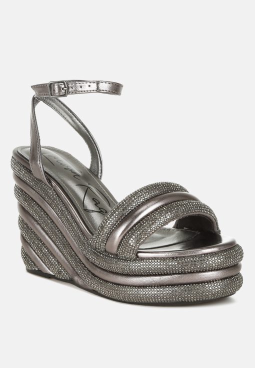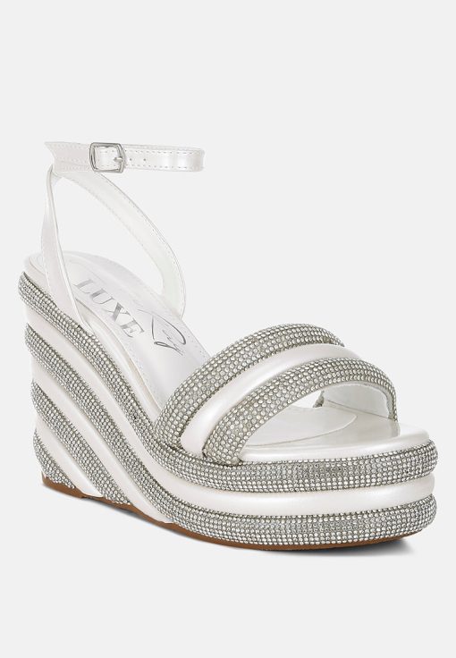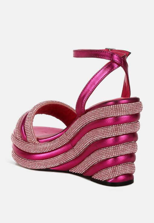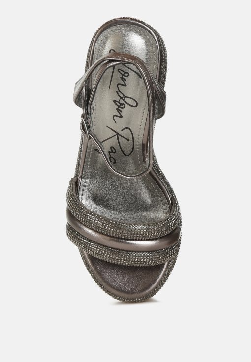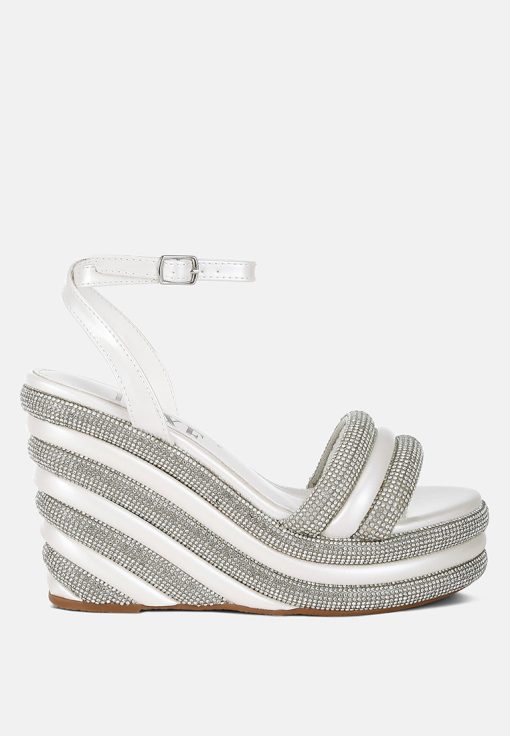 These high wedge heel sandals are the epitome of style! Featuring a gorgeous 4-inch heel, plush cushion insoles, and an adjustable pin buckle ankle strap, these stunning sandals are adorned with rhinestones for a glamorous touch. The dazzling flatforms are perfect for parties, weddings, and bachelorettes.