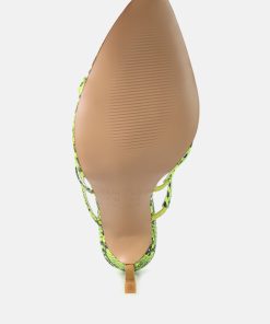 Step into the spotlight and become the Femme Fatale everyone envies with these high stiletto heels featuring snake print deets. The pointed toe and strappy design are right on-trend, screaming trends. And the metallic heel highlights add just the right amount of drama to your look.