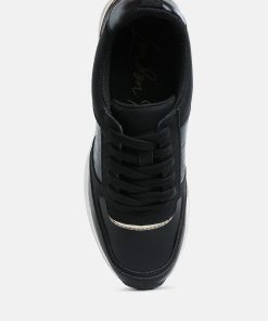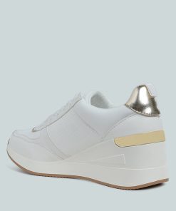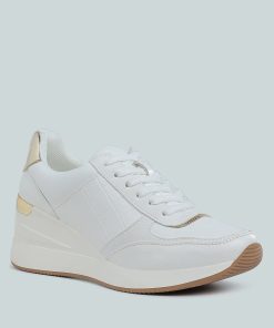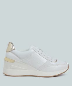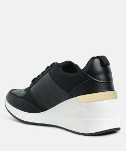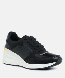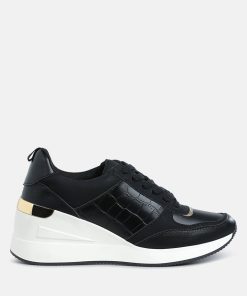 Add some sporty vibes to your outfit of the day with these lace-up kicks. Crafted from premium faux leather and adorned with a stylish croco embossment, these chunky wedge heels are a must-have. Pair them with your favorite gym set for a look that will inspire your workout!