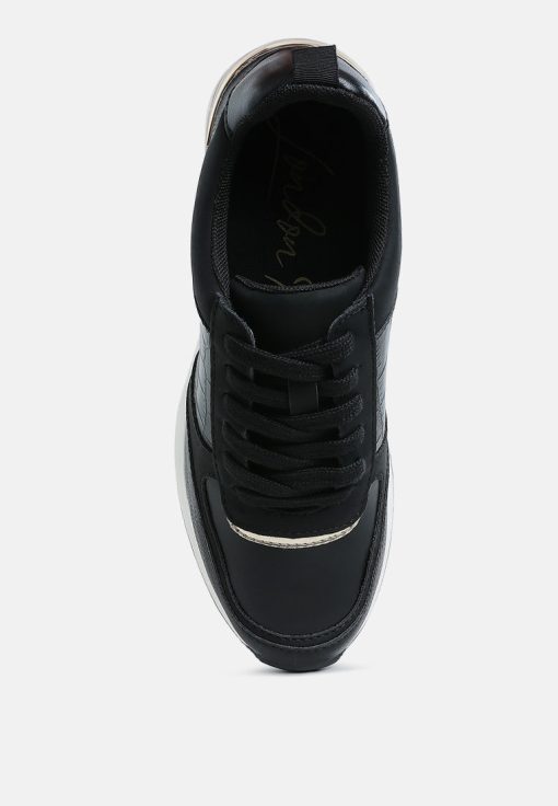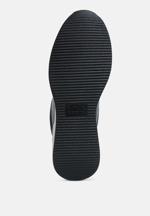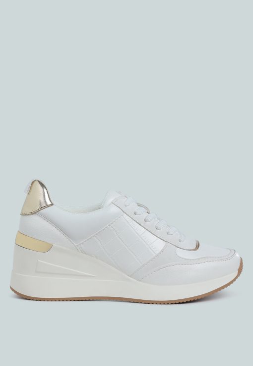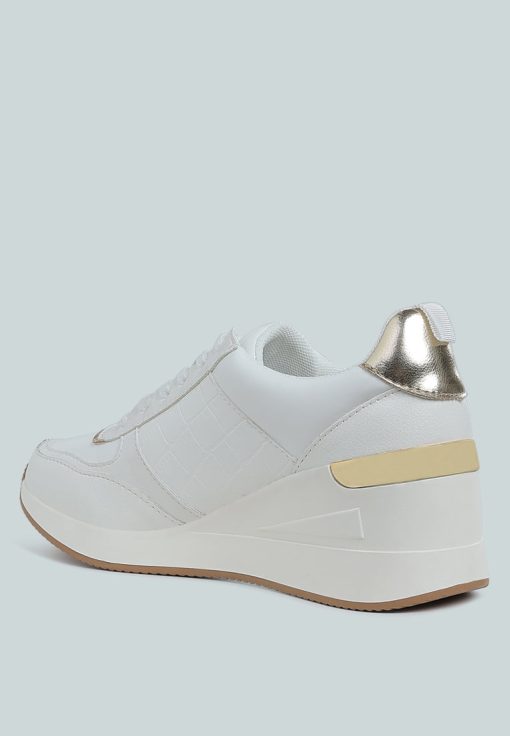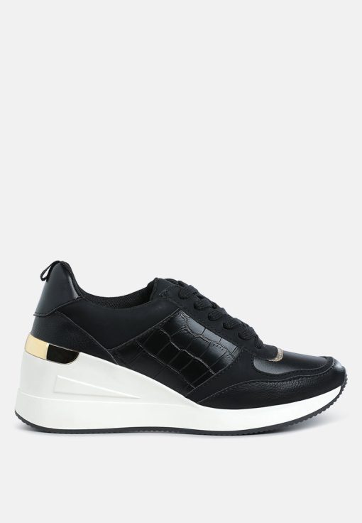 Add some sporty vibes to your outfit of the day with these lace-up kicks. Crafted from premium faux leather and adorned with a stylish croco embossment, these chunky wedge heels are a must-have. Pair them with your favorite gym set for a look that will inspire your workout!