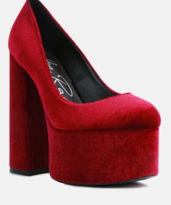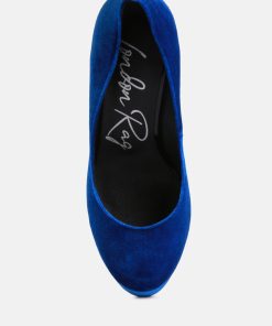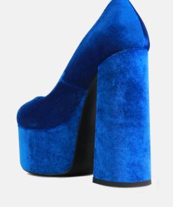 Women’s Shoes London Rag Old Novelty Platform Heel Velvet Pumps | Blue
