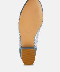 Boost your casual style with our Rhinestone Embellished Denim Ballet Flats. These flats combine the comfort of denim with the glamour of rhinestones, making them a perfect choice for a stylish and relaxed look.