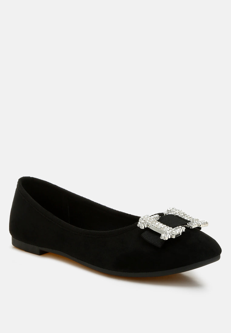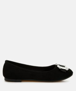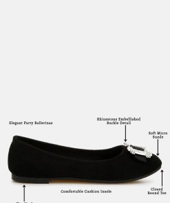Where elegance meets sparkle for your special occasions—crafted with high-quality microfiber, these ballerinas are designed to make you shine on the dance floor. The rhinestone-embellished buckle detail makes them an even better pair of shoes for parties or casual hangouts.
