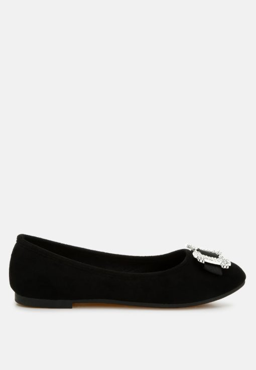 Where elegance meets sparkle for your special occasions—crafted with high-quality microfiber, these ballerinas are designed to make you shine on the dance floor. The rhinestone-embellished buckle detail makes them an even better pair of shoes for parties or casual hangouts.