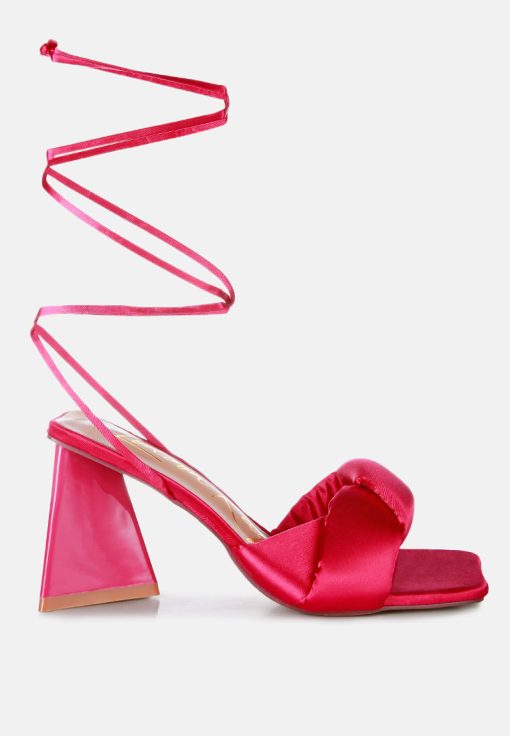 The stuffed satin knotted strap sandal, featuring an intriguing triangle block heel in patent faux leather, is an absolute showstopper for parties. These high lace-up block heel sandals look stunning and feel amazing on your feet. Once you slip into these beauties, they’re bound to become your go-to casual sandals in no time.