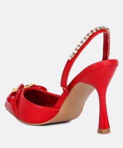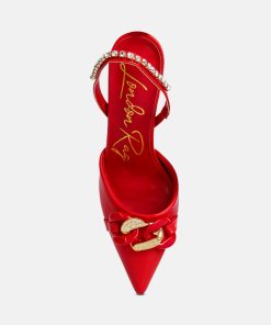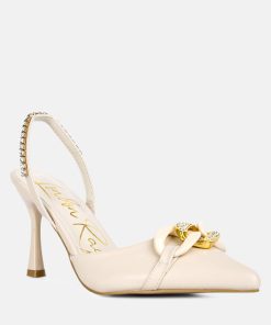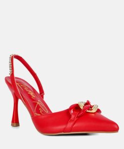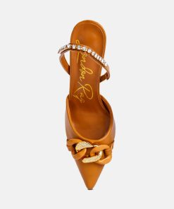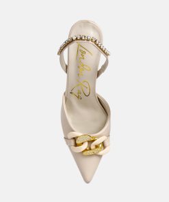 If these diamante embellished chain sandals had a name, it would be sheer luxury combined with class. The sandals have metallic chains and diamante detailing on the vamp. With a soft cushion insole, they make for the best after-party shoes, wedding heels, wedding guest shoes, and more!