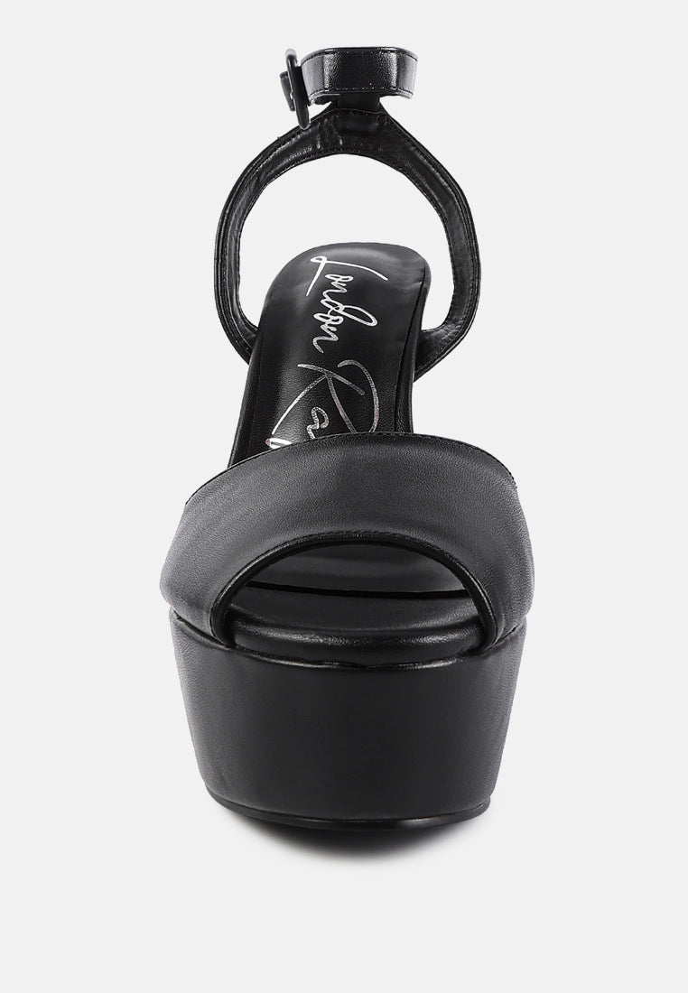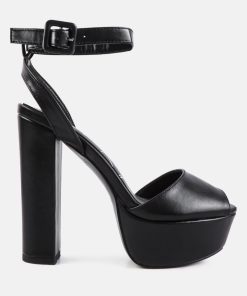 Chic and chunky, these platform high heels are comfortable with soft pad insoles that cut stress. The ankle straps encase the ankle beautifully. The sandals are a versatile piece and a must-have in your shoe drive.