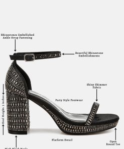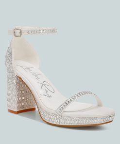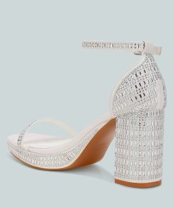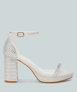 Women’s Shoes London Rag Ronan Rhinestones Embellished Block Sandals | White