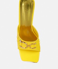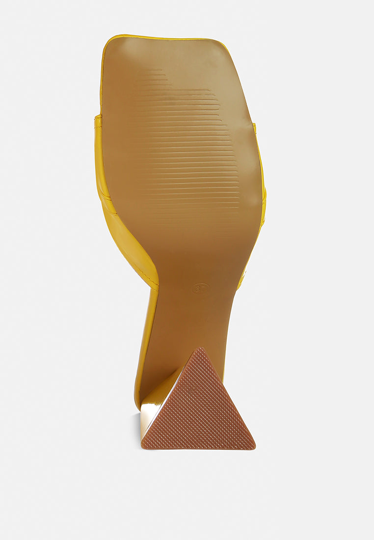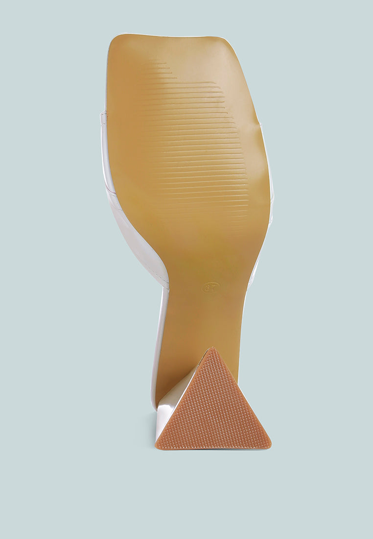 The slip-on triangular block heel sandals ooze sexiness and scream style while staying incredibly easy to wear. What catches the eye is the horse-bit buckle detail adorning the front, adding the right amount of drama. Wear these beauties on bright sunny days or with evening dresses for a party.