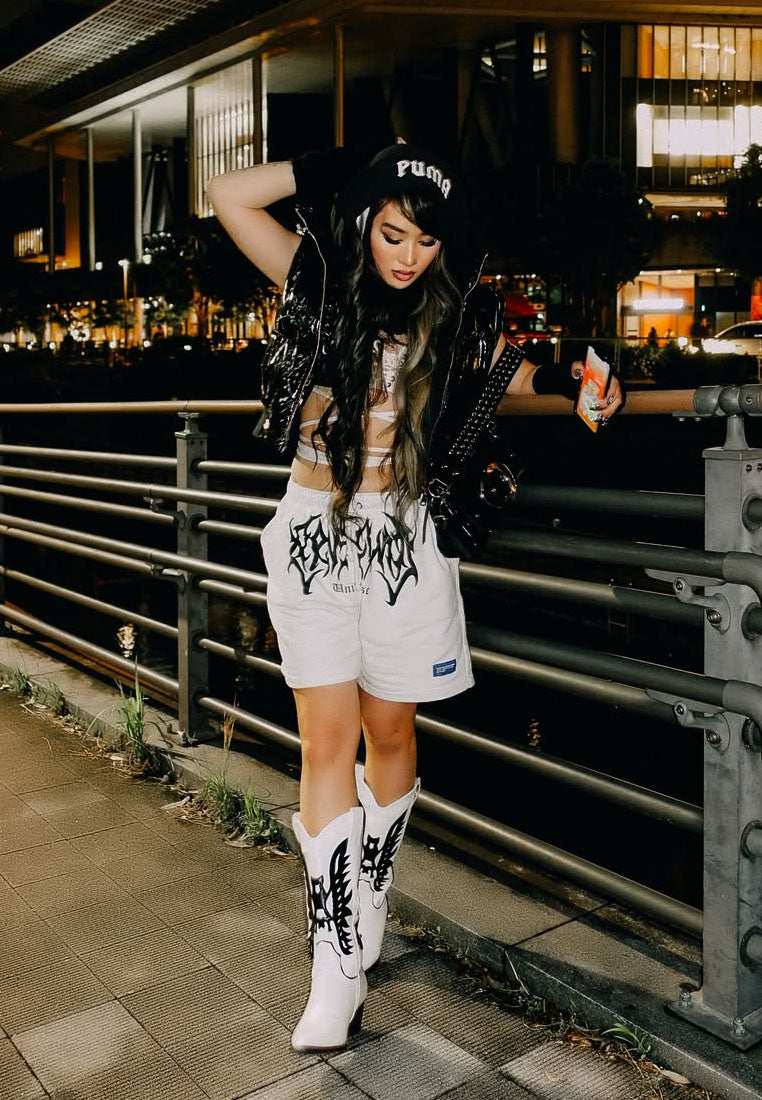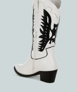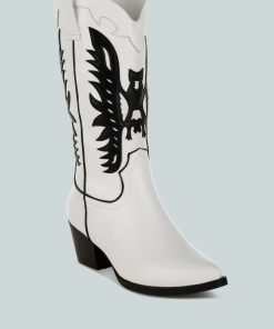 Women’s Shoes London Rag Thistle Winged Patchwork Cowboy Boots | White