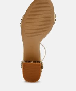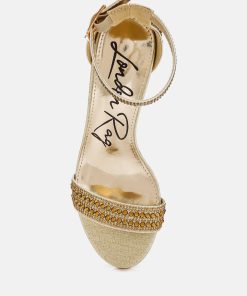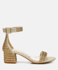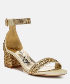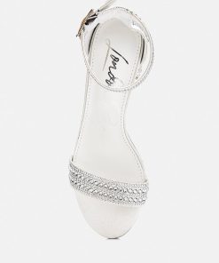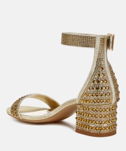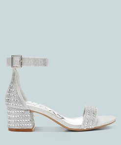 Certainly a stunner! The rhinestones embellished sandals are nothing short of glamorous beauties which are sure to make a dazzling statement! The cushion insole offers comfort while the ankle strap ensures a secure fit.