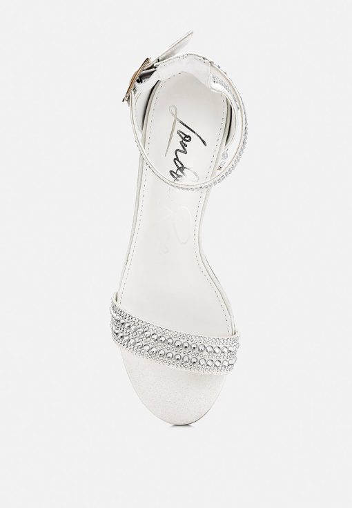 Certainly a stunner! The rhinestones embellished sandals are nothing short of glamorous beauties which are sure to make a dazzling statement! The cushion insole offers comfort while the ankle strap ensures a secure fit.