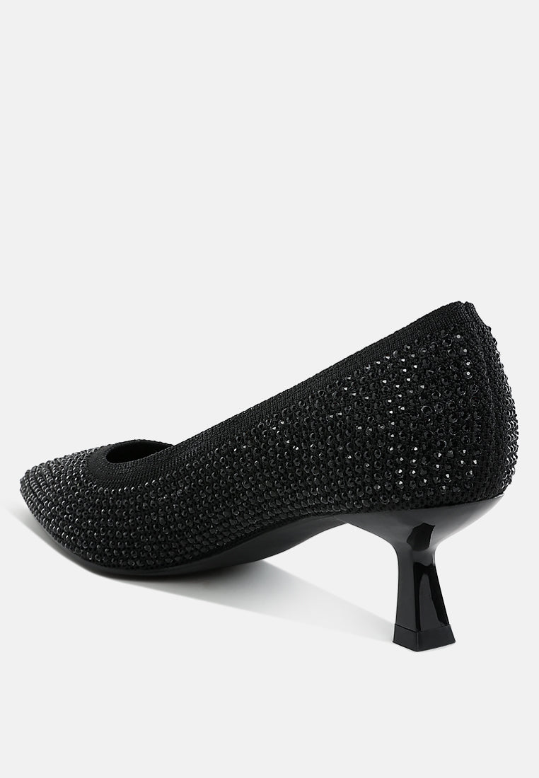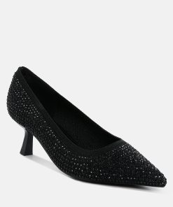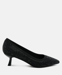 Meet the exquisite rhinestone-embellished pumps, bound to create a sizzling impression. Dip your feet into luxury, as these pumps come with plush cushion insoles and adorable 2.5-inch kitten heels to make you stand out at any formal event or party you grace!