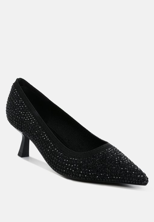 Meet the exquisite rhinestone-embellished pumps, bound to create a sizzling impression. Dip your feet into luxury, as these pumps come with plush cushion insoles and adorable 2.5-inch kitten heels to make you stand out at any formal event or party you grace!