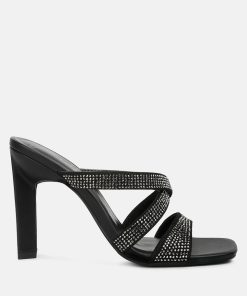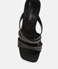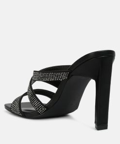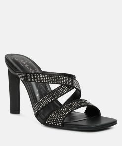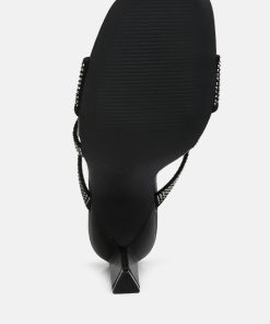 The high-heeled sandals are easy to wear being slip-on and have a comfortable soft insole. The rhinestones embedded straps definitely elevate the overall look of the stylish sandals and are perfect for a night out partying!