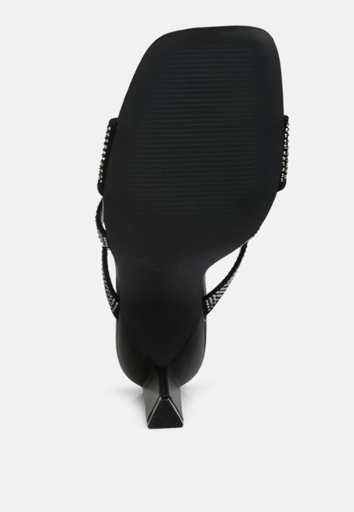 The high-heeled sandals are easy to wear being slip-on and have a comfortable soft insole. The rhinestones embedded straps definitely elevate the overall look of the stylish sandals and are perfect for a night out partying!