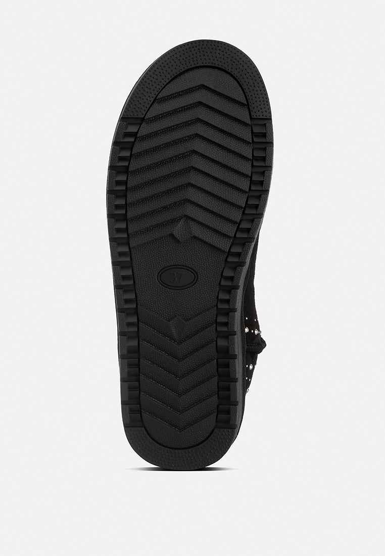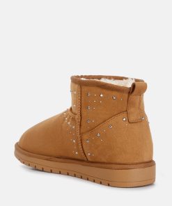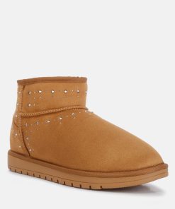 Add a touch of nostalgia and comfort to your shoe collection this year. These rhinestone embellsiehd ankle length boots are trendy, perfectly Y2K, functional for all of your outfits. The best way to dress these up would be with a laced cami and mini skirt in classic 2000s style!
